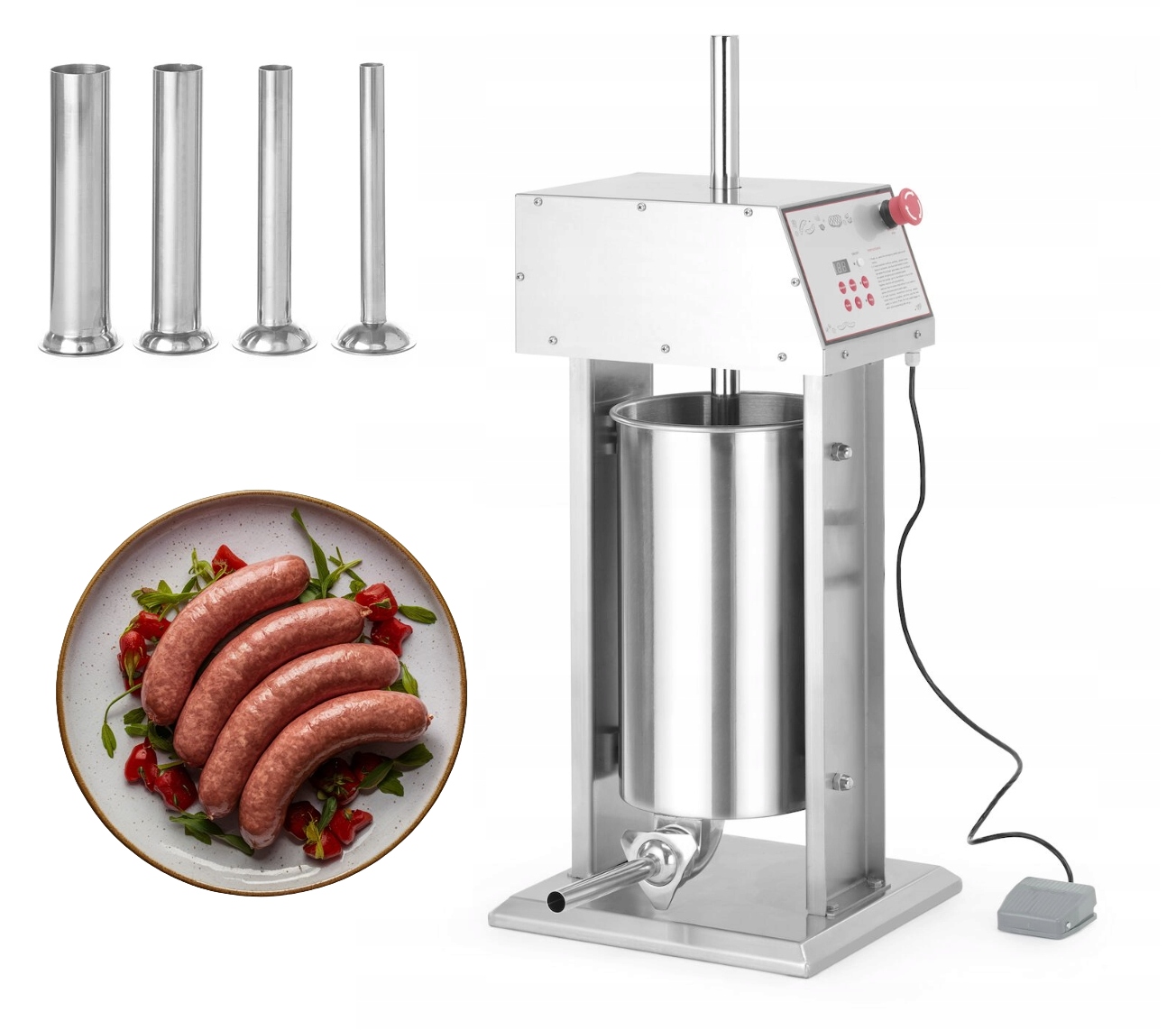 Profesjonalne wykończenie: Elektryczna nadziewarka do kiełbas HENDI z serii Profi Line to urządzenie przeznaczone dla profesjonalnych kucharzy i miłośników wędlin, zapewniające wygodne i efektywne przygotowanie większej ilości kiełbas.