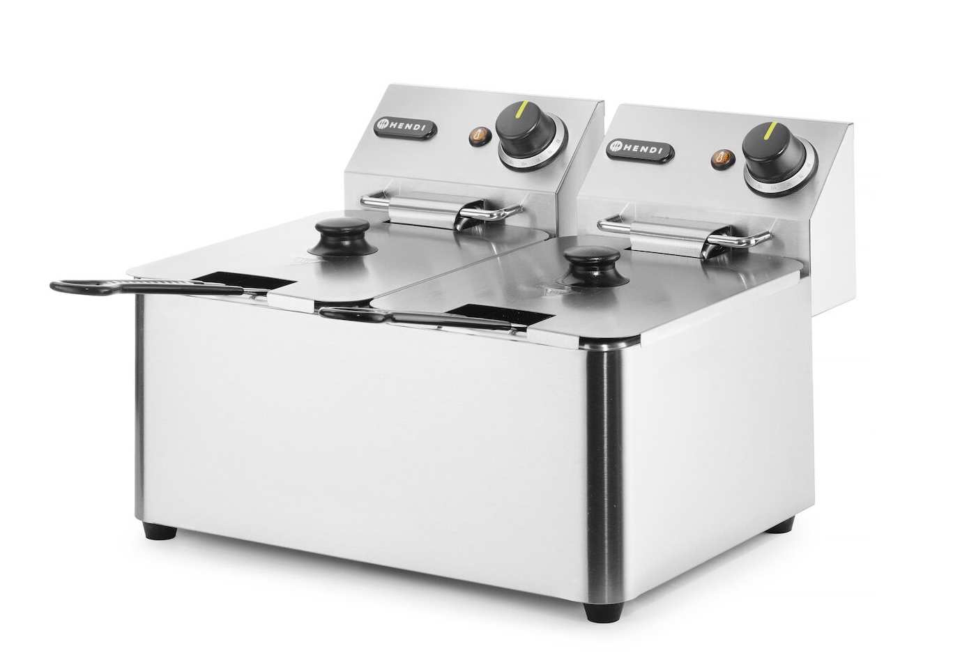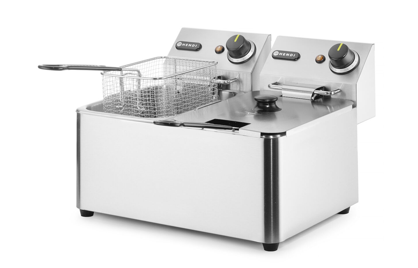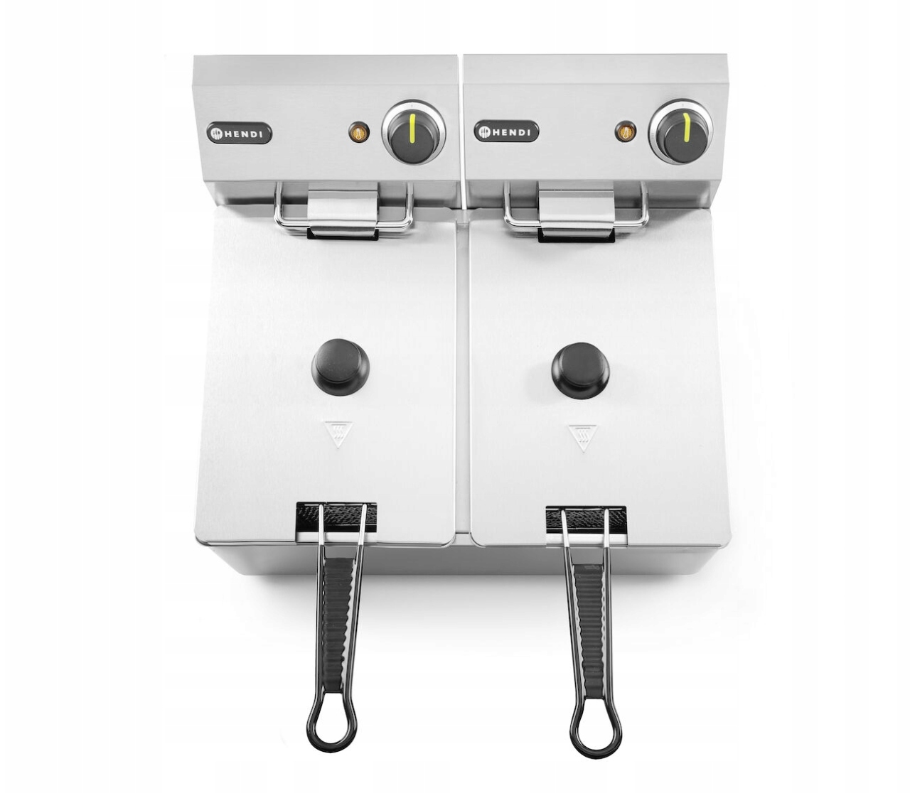 Bezpieczeństwo: Demontowany element sterujący z zabezpieczeniem wyłączającym frytownicę po jego zdjęciu oraz termostat chroniący przed przegrzaniem.