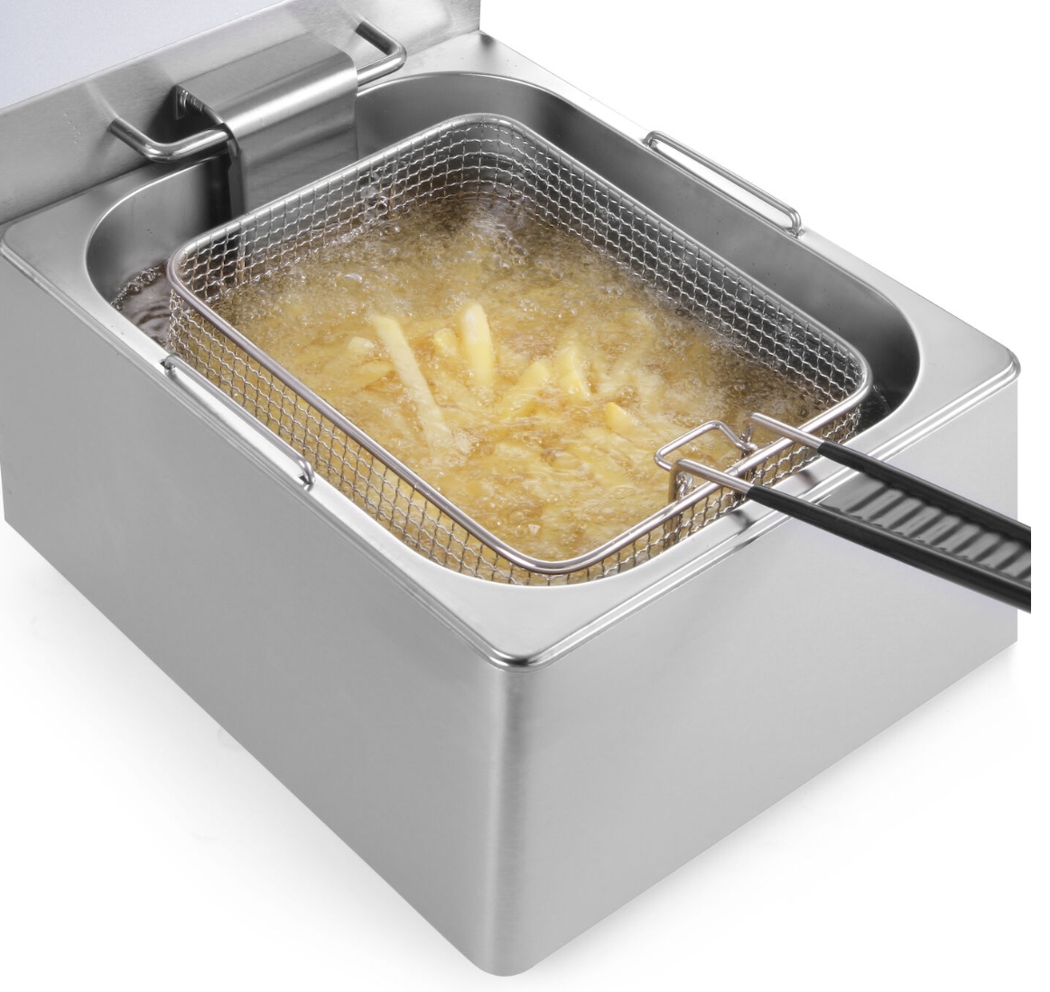 Bezpieczeństwo: Demontowany element sterujący, który automatycznie wyłącza frytownicę w momencie zdjęcia, zapewnia bezpieczne użytkowanie.