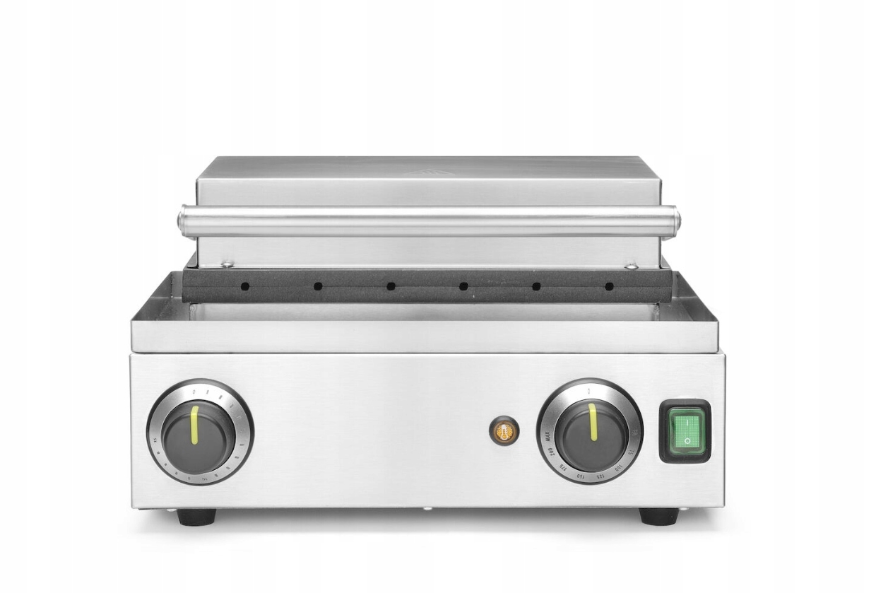 Łatwość utrzymania czystości: Rynienka ociekowa na nadmiar ciasta oraz łatwe czyszczenie płyty grzewczej.