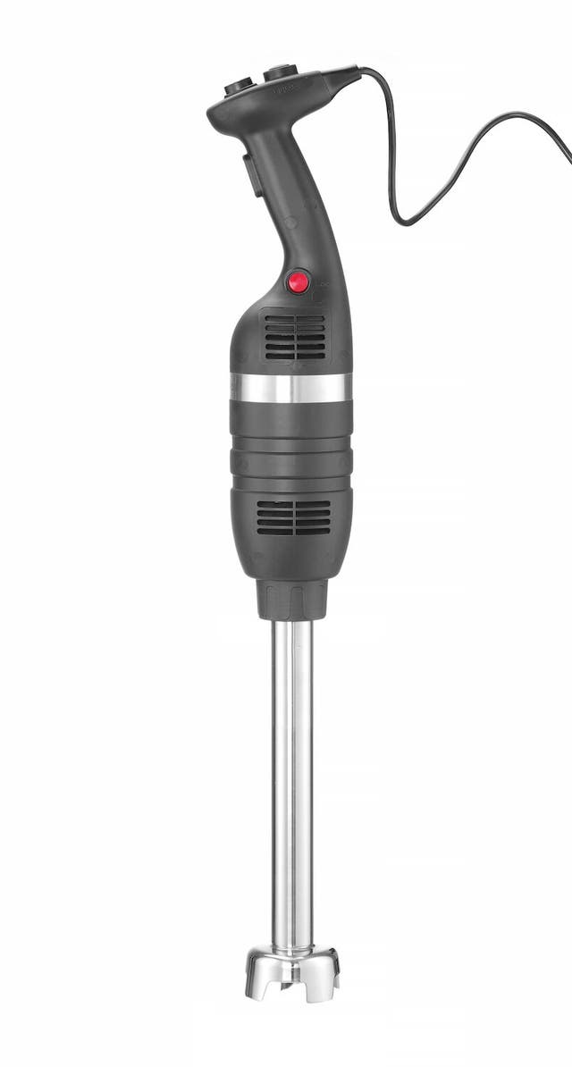 • Ramię miksujące o długości 400 mm oraz moc 500 W umożliwiają pracę z pojemnikami o pojemności do 80L, co czyni go idealnym rozwiązaniem dla gastronomii oraz cateringów.