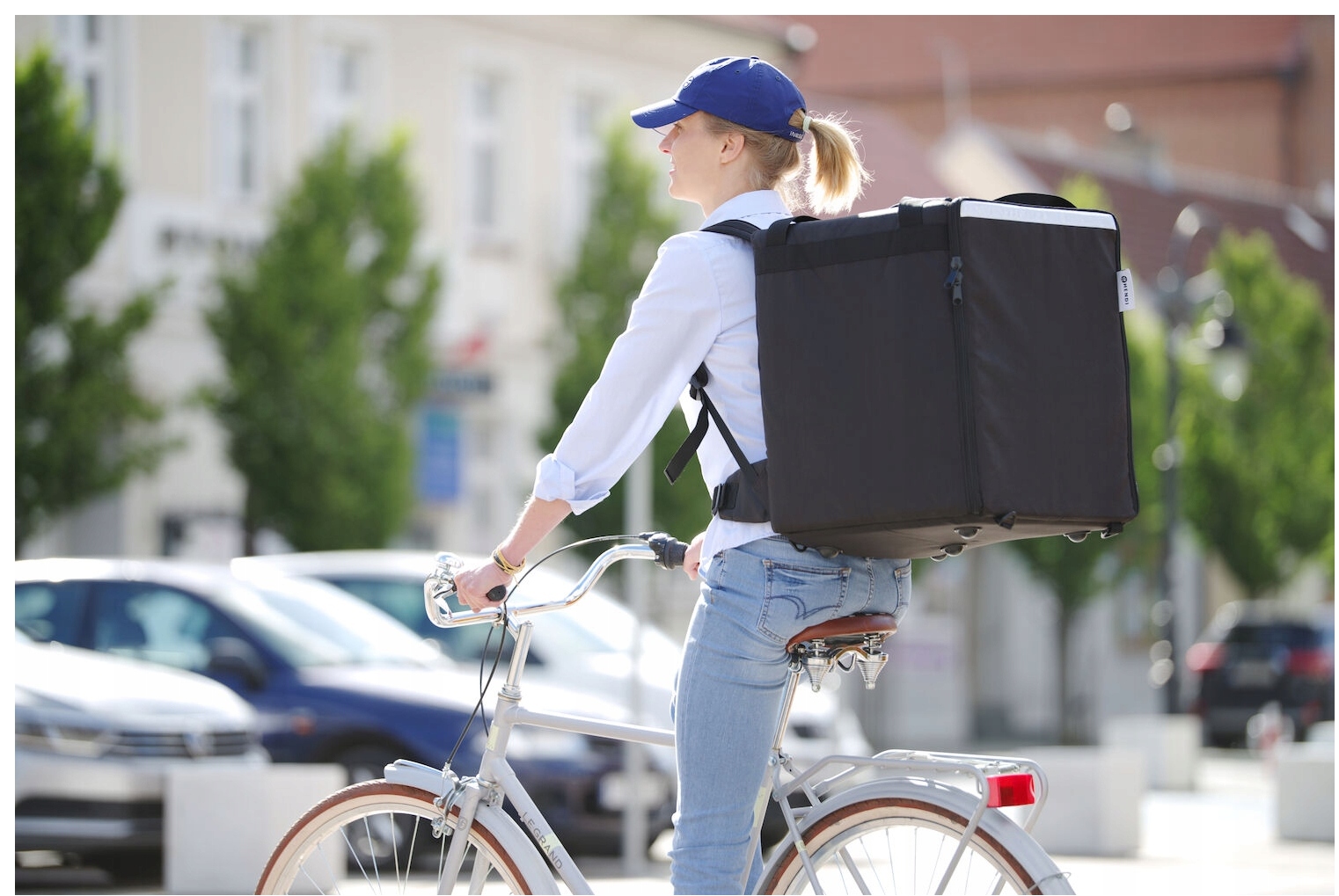 Bezpieczeństwo: Plecak wyposażony w listwę odblaskową zwiększającą widoczność kuriera w nocy i w trudnych warunkach pogodowych.