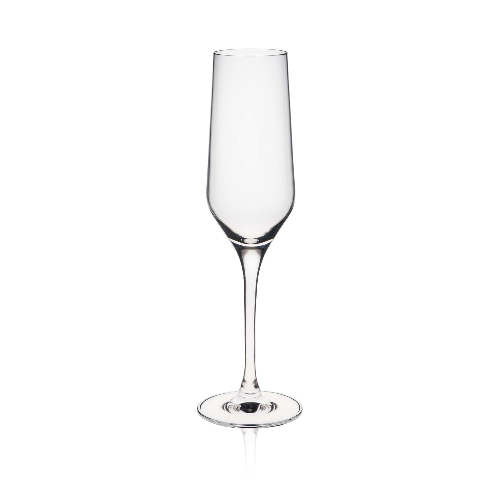 Elegancki zestaw 6 kieliszków do szampana Martina o pojemności 220 ml wykonany ze szkła kryształowego. Przezroczyste, smukłe kształty (wysokość 250 mm, średnica 74 mm) podkreślają bąbelki i aromat szampana, a precyzyjne wykonanie sprawia, że kieliszki prezentują się wyjątkowo efektownie podczas przyjęć i uroczystych okazji. Produkt nadaje się do mycia w zmywarkach przemysłowych, co ułatwia serwisowanie w gastronomii i podczas większych wydarzeń.
