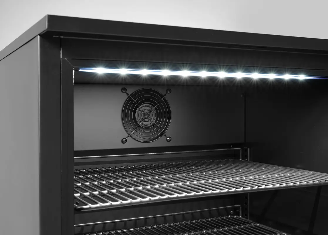✔ Stabilne chłodzenie – Zakres temperatur od 0°C do 10°C oraz chłodzenie wspomagane wentylatorem zapewniają równomierne warunki przechowywania napojów.