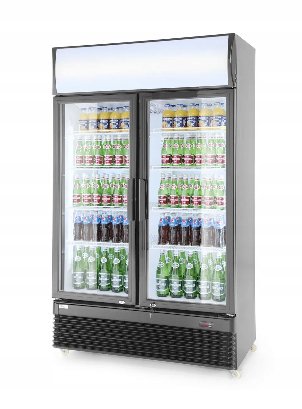 - Przestronność: Pojemność 512 litrów, z 8 przestawnymi półkami pokrytymi białym PVC, zapewnia dużą przestrzeń do przechowywania napojów.