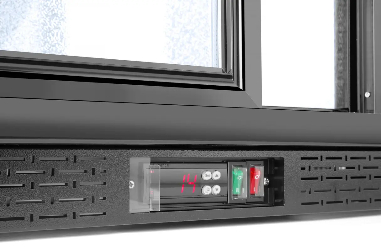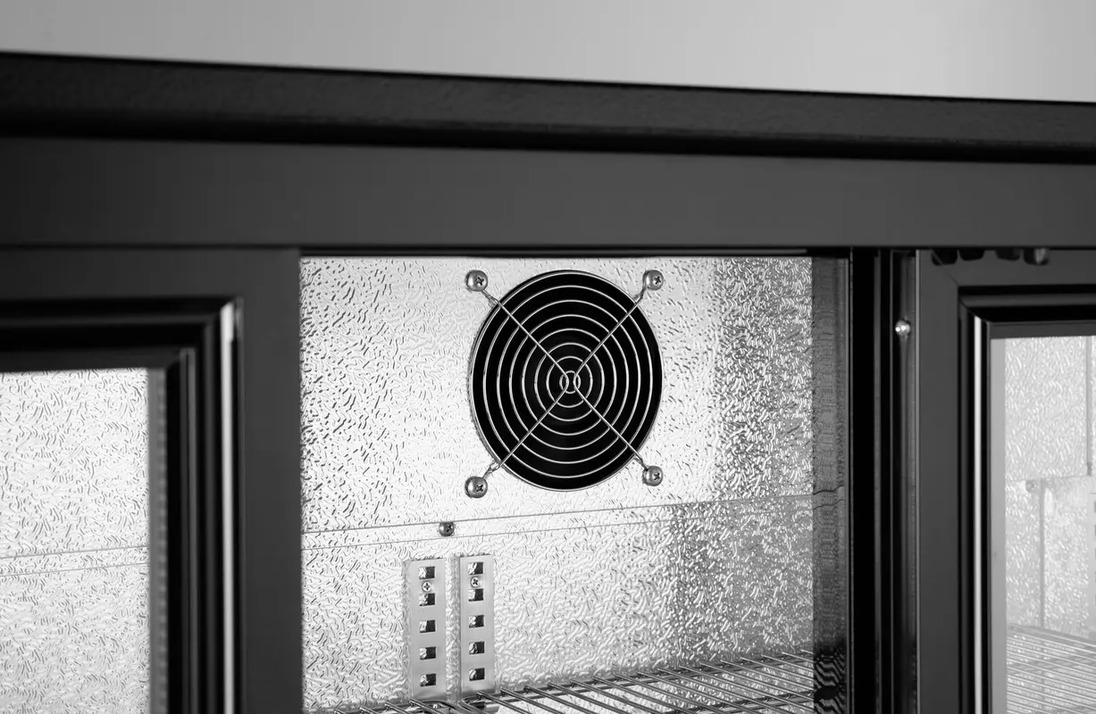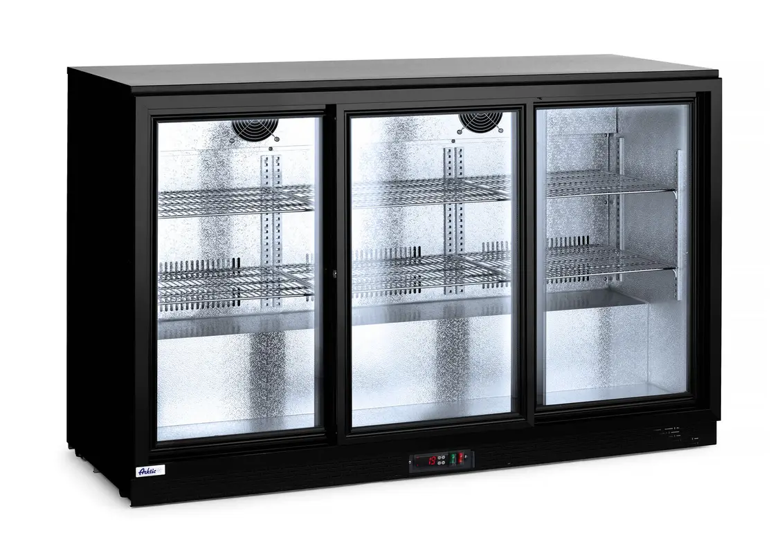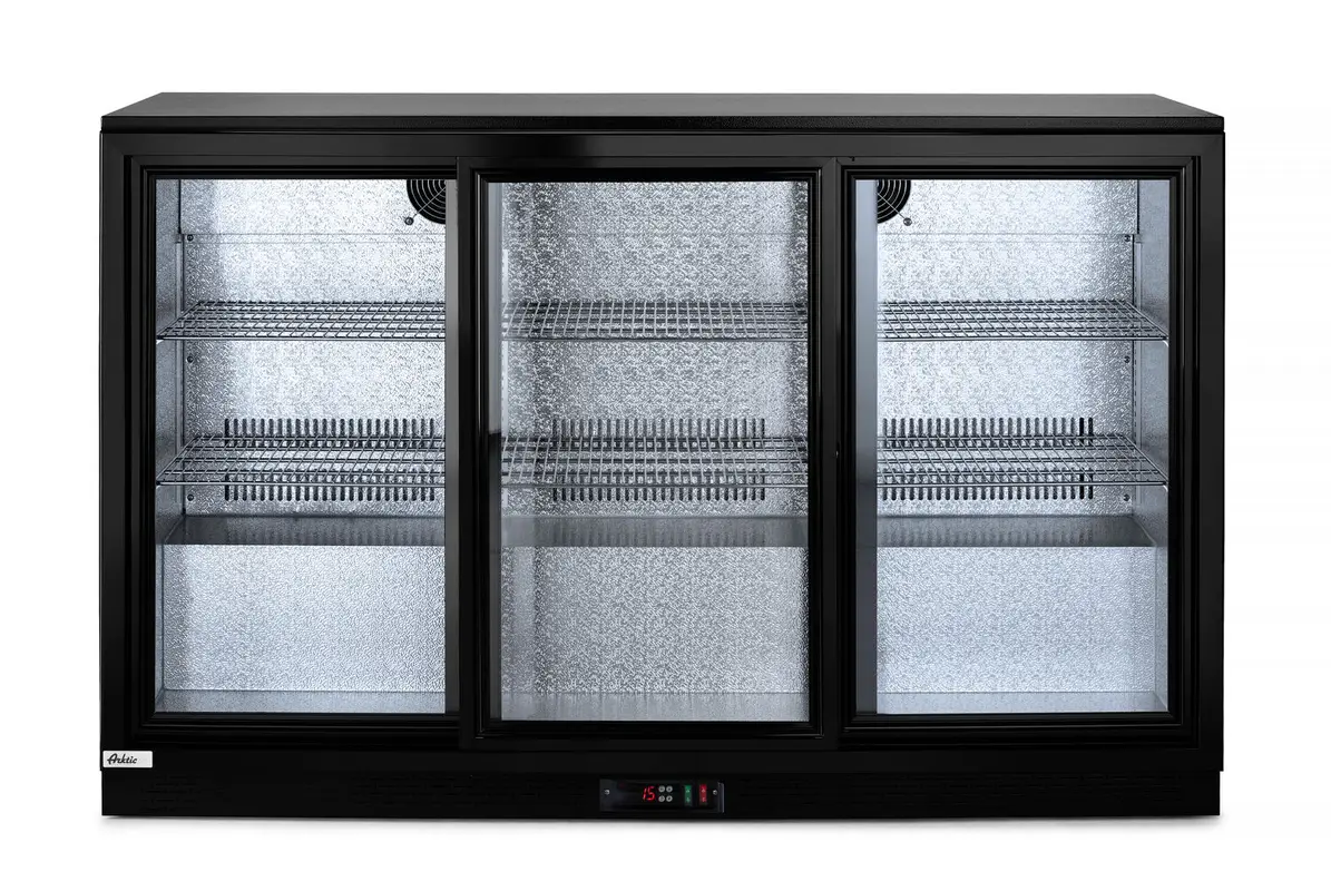 ✔ 3 przesuwne drzwi z szybą hartowaną – wygodny dostęp i elegancka prezentacja napojów