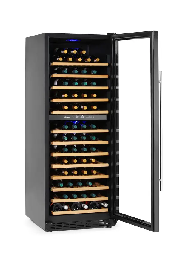✔ Dwie niezależne strefy chłodzenia – pozwalają na ustawienie różnych temperatur, idealnych do przechowywania zarówno czerwonego, jak i białego wina.