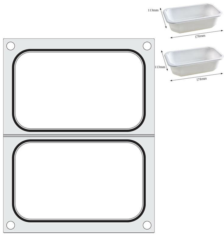 ✔ Podwójny format – Przystosowana do zgrzewania dwóch pojemników o wymiarach 178×113 mm, co pozwala na jednoczesne pakowanie dwóch porcji produktów.