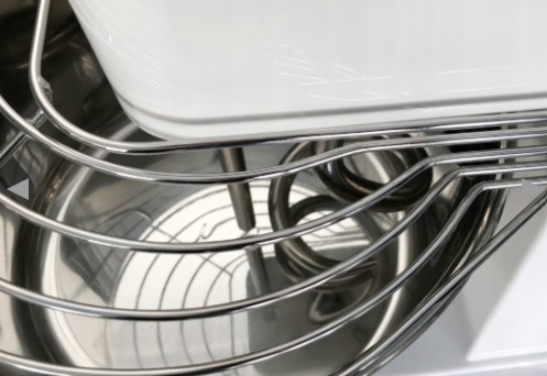 Prosta obsługa i wygodne użytkowanie: Dzięki zastosowaniu napędu łańcuchowego oraz przekładni olejowej, praca urządzenia jest cicha, a ciasto wyrabiane w sposób równomierny i bez nagrzewania. Wbudowany timer umożliwia ustawienie czasu wyrabiania ciasta na 30 minut, co dodaje wygody w codziennej pracy.