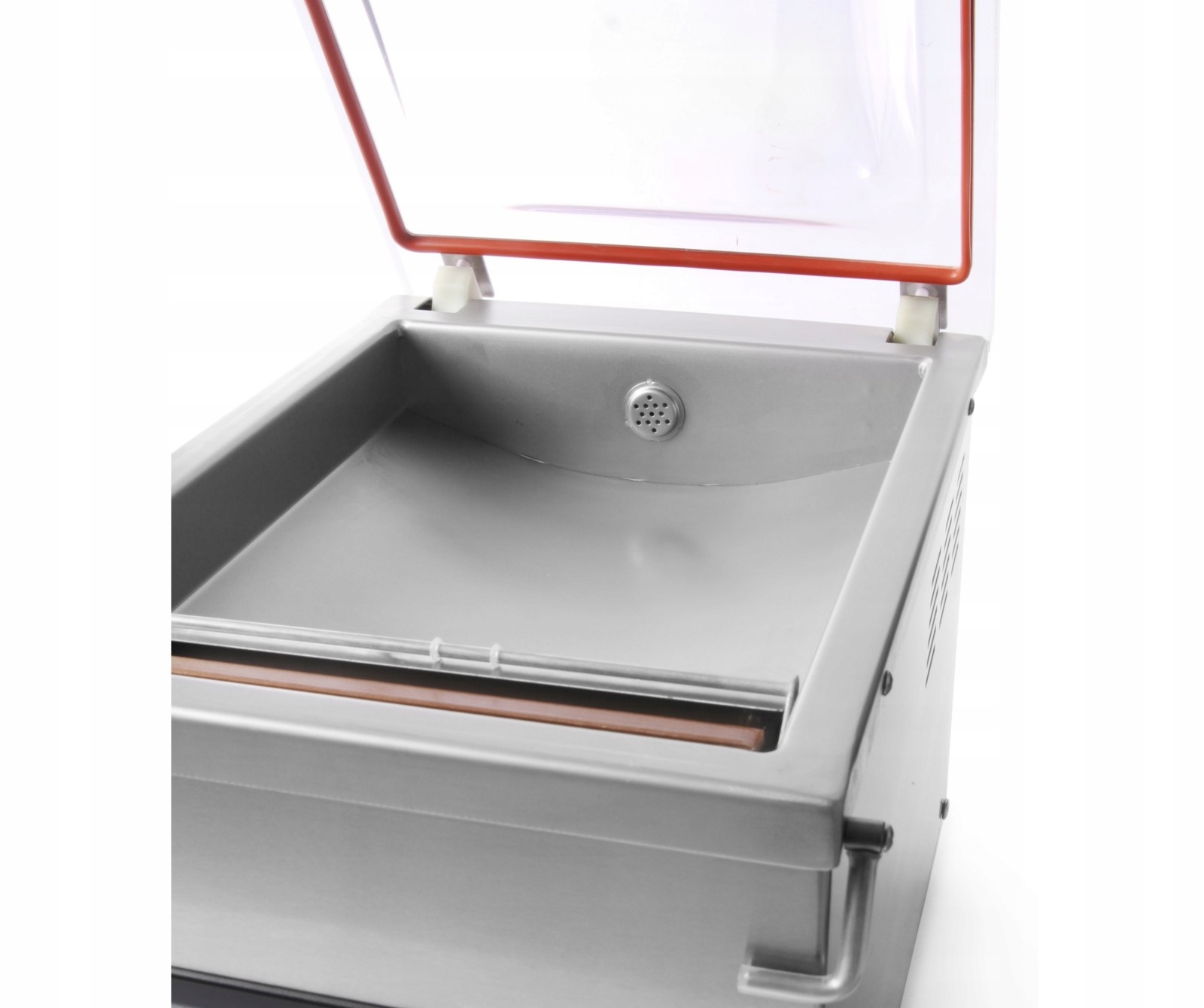 ✔ Trwałość i higiena – Wysokogatunkowa stal nierdzewna AISI 304 oraz przezroczysta pokrywa ABS zapewniają trwałość i kontrolę procesu pakowania w czasie rzeczywistym. Wypukła pokrywa umożliwia pakowanie większych lub nieregularnych przedmiotów.