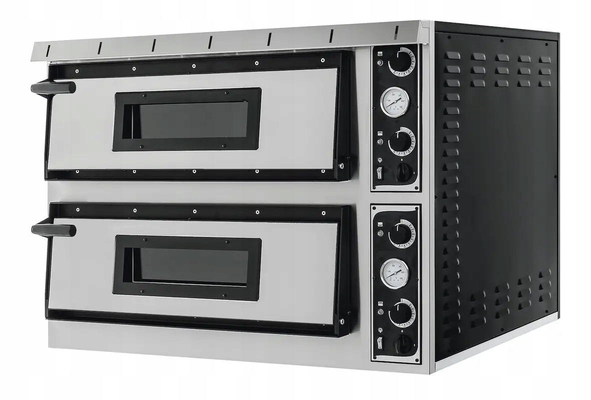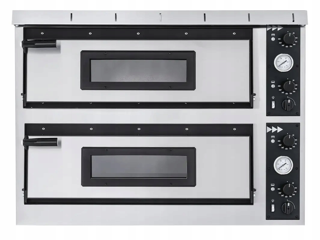 ✔ Podwójna moc wypieku – Piec posiada 2 niezależne komory, każda wyposażona w 6 pancernych grzałek (3 górne, 3 dolne), co zapewnia równomierne i intensywne nagrzewanie każdej pizzy.