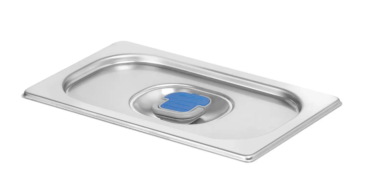 ✔ System 5 kolorowych klipsów – Pokrywka wyposażona w klipsy w kolorach: czerwonym, żółtym, niebieskim, fioletowym i zielonym, które ułatwiają identyfikację zawartości oraz wspierają organizację pracy zgodnie z zasadami HACCP.