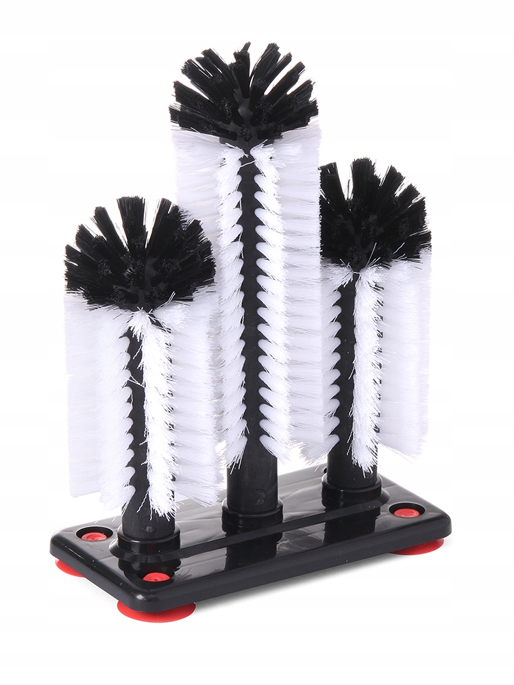 ✔ Trzy szczotki czyszczące – Włosie wykonane z wytrzymałego nylonu, zapewniające skuteczne usuwanie zabrudzeń i osadów z wnętrza i zewnętrznej powierzchni szklanek.