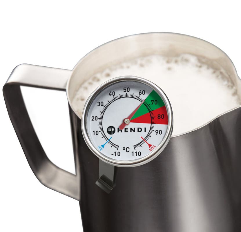 Termometr do spieniania mleka HENDI – niezbędne narzędzie każdego baristy! Precyzyjny, solidny i zaprojektowany z myślą o doskonałej jakości każdej filiżanki.