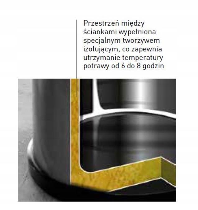 ✔ Izolacja termiczna klasy premium – Dzięki wypełnieniu przestrzeni między ściankami specjalnym materiałem izolującym, termos skutecznie utrzymuje ciepło (lub zimno) przewożonych dań.
