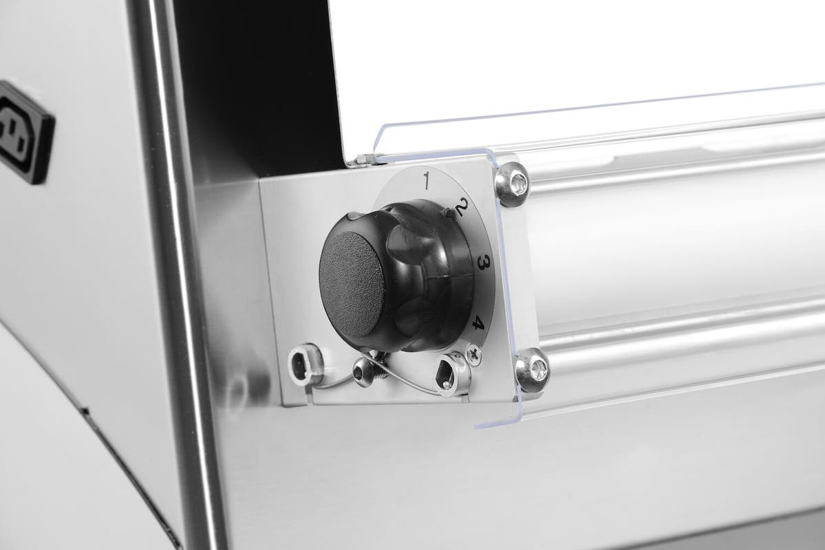 ✔ Efektywne wałkowanie ciasta – Urządzenie wyposażone w 2 pary wałków umożliwia szybkie i równomierne rozwałkowanie porcji ciasta o wadze od 0,21 do 0,70 kg. Idealne do przygotowania pizz o średnicy od 26 do 40 cm.