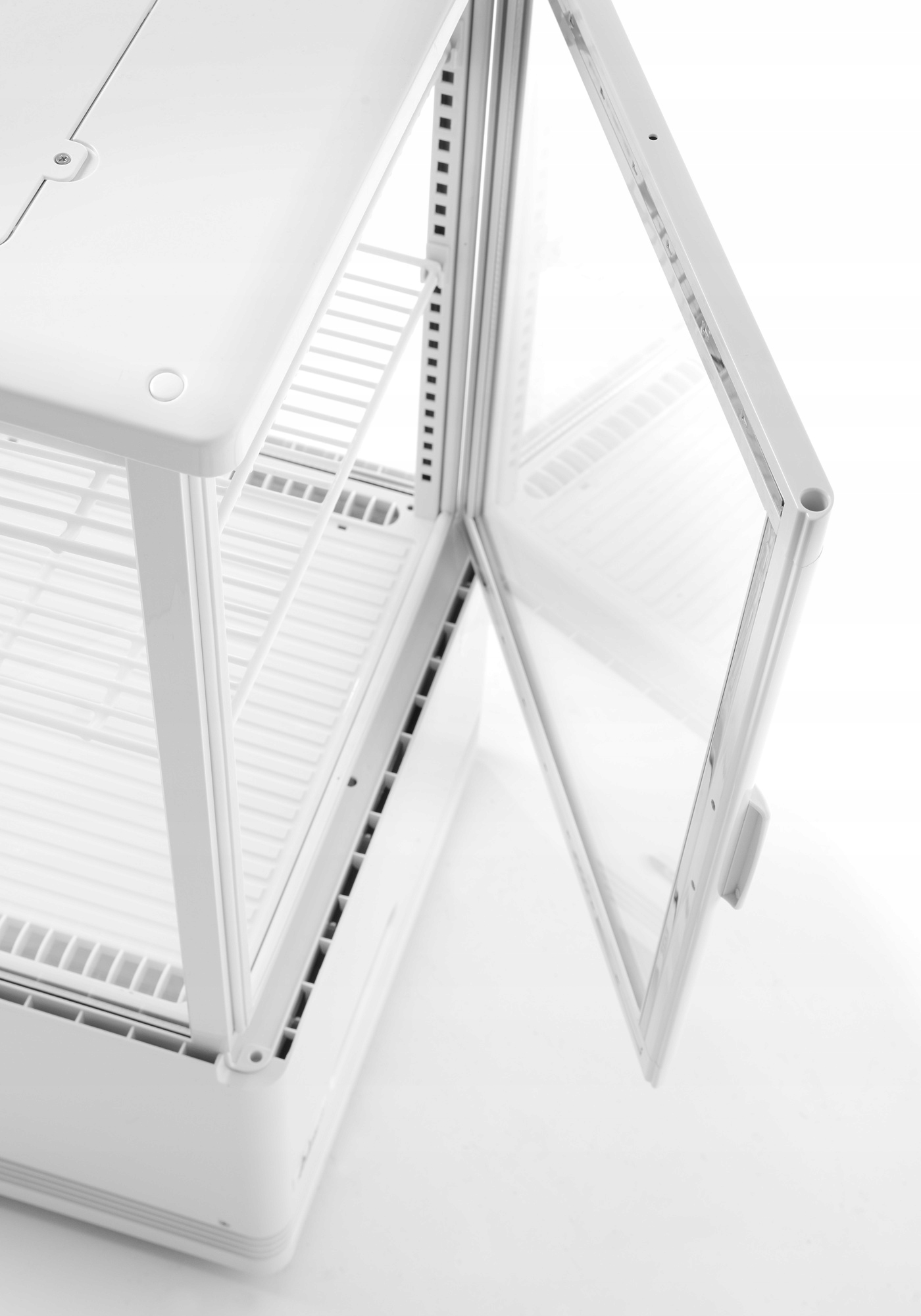 - Kolor i materiały:Obudowa: ABS + PVCSzyby: podwójne szkłoPółki: stal powlekana PVC