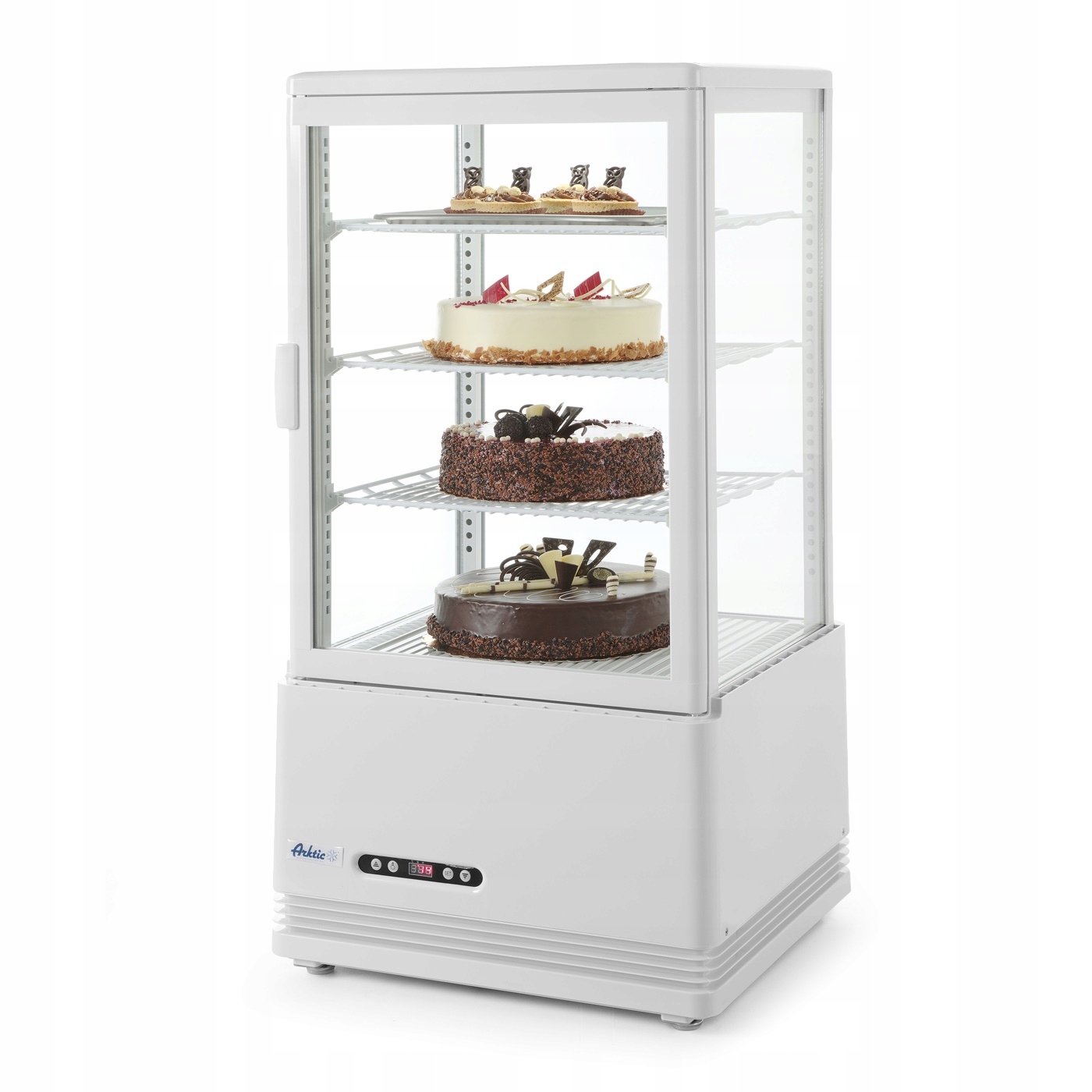 - Kompaktowa i wszechstronna: Witryna nastawna idealna do ekspozycji i przechowywania napojów, przekąsek oraz produktów spożywczych.