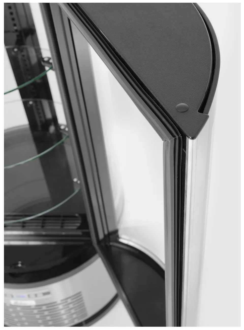 - Oświetlenie LED z dwóch stron: Efektywne podświetlenie wnętrza zapewnia doskonałą prezentację przechowywanych produktów.