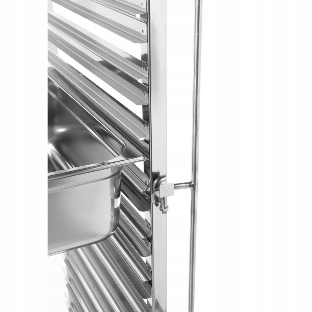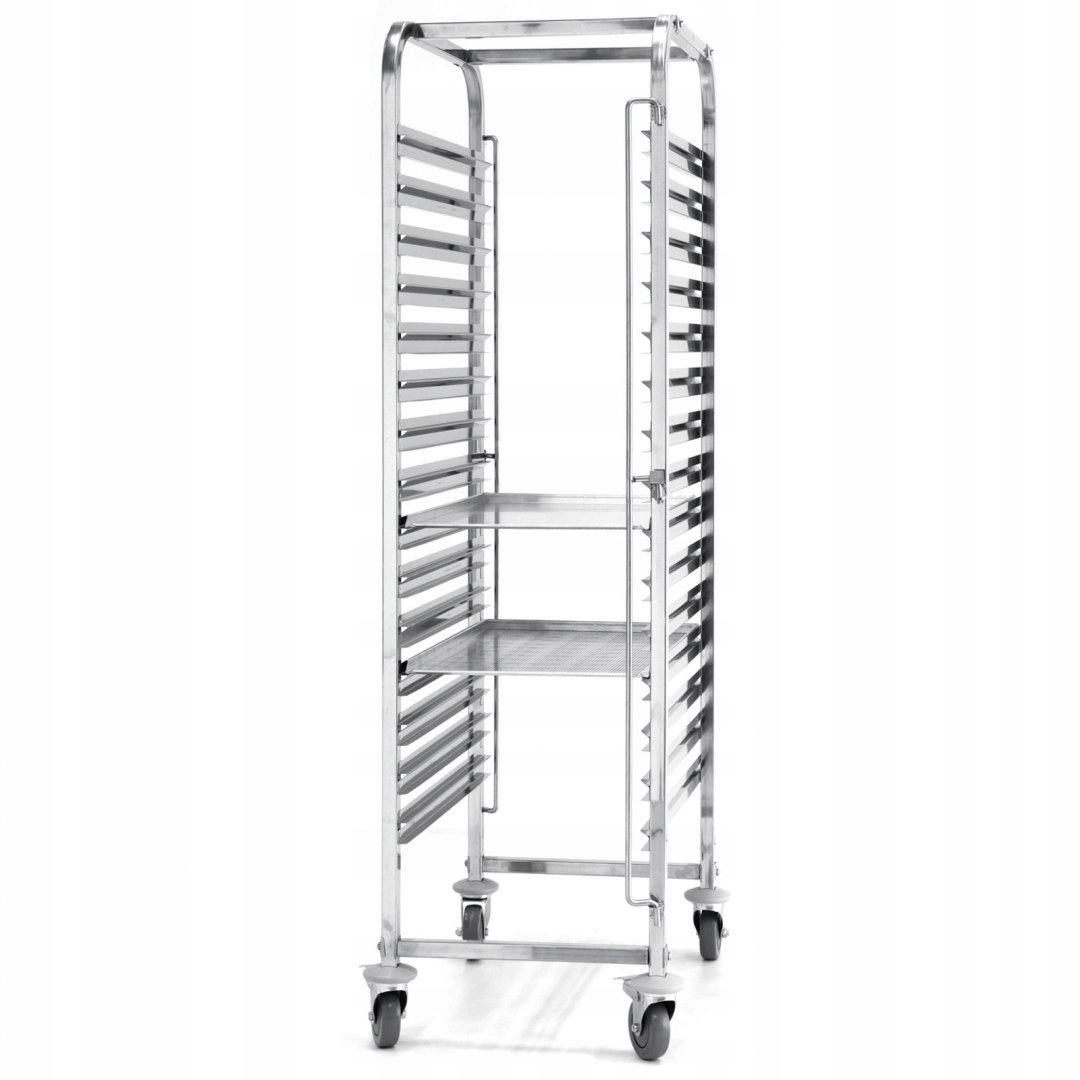- Wysoka pojemność: Wózek zaprojektowany do transportu 15 blach o wymiarach 600×400 mm, idealny do użytku w gastronomii.
