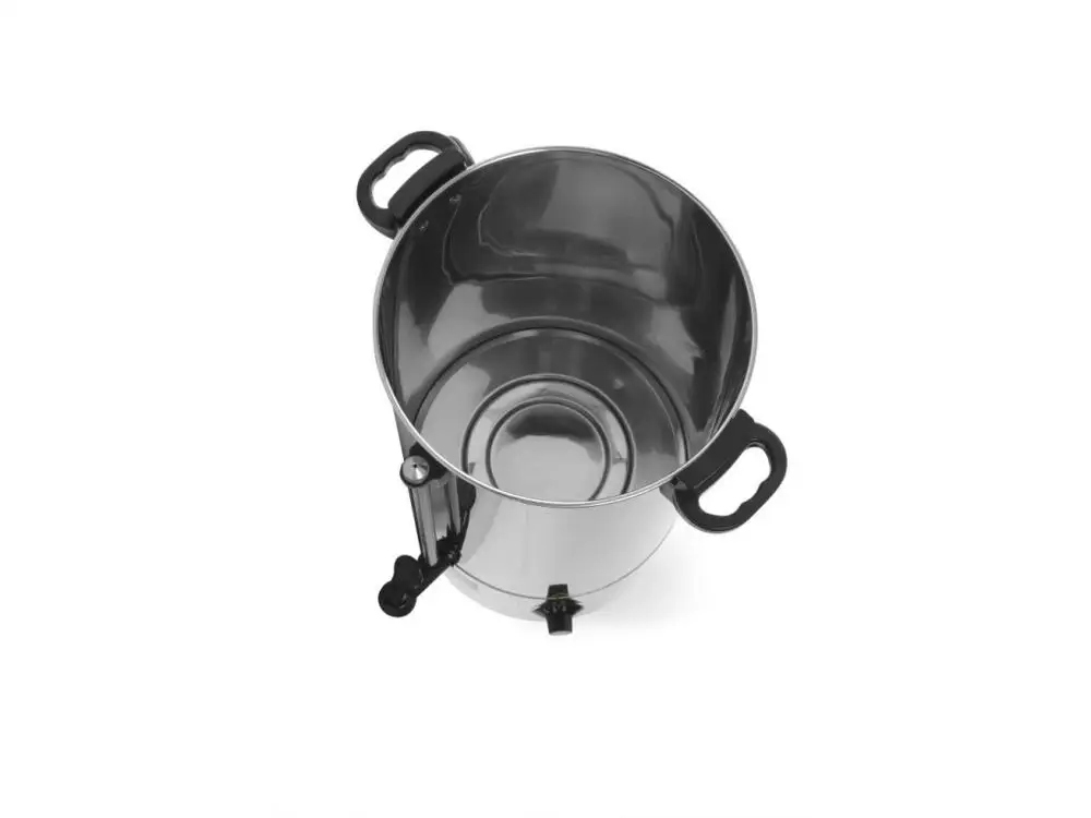 - Miarka oraz niekapiący kran – wygodne nalewanie kawy bez rozlewania